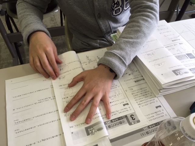 数学の時間は、各自の学習に入る前に、数を使い頭のウォーミングアップを行います。 今日は、足して1になる数(0.1であれば、0.9)を50問解く早さを競いました。 真剣なスタッフを見て、「大人げない~」...