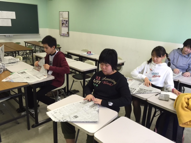 月1度の特別HR。今月は表コミ1年担任の池田博人先生に来ていただきました。 テーマは「新聞紙の魅力」 普段何気なく見ている新聞紙ですが、J-IVY生の知らないことが沢山ありました。 新聞...