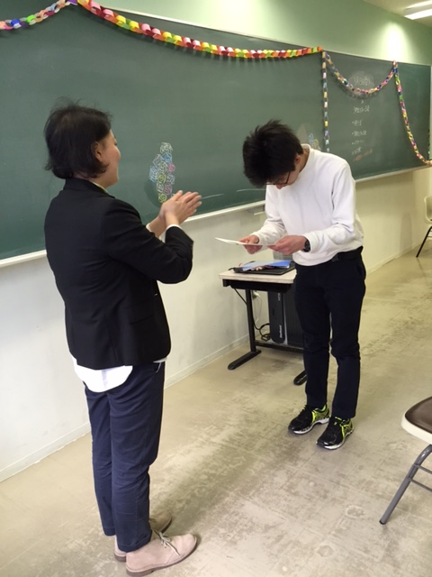 1年間の振り返りムービーを見て、修了書を渡しました。