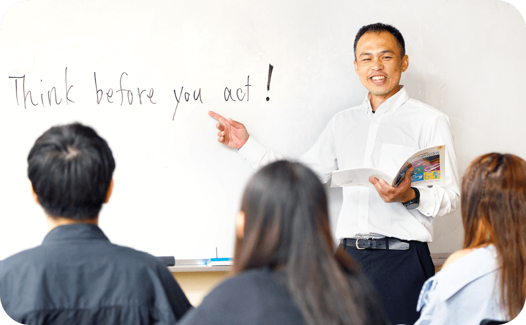 1クラス20人程度の少人数で、一人ひとりの習熟度に合わせたきめ細かな指導を行います。授業の約8割を英語で実施し、英語力を養うだけでなく、英語を使って学び、考える授業も取り入れています。