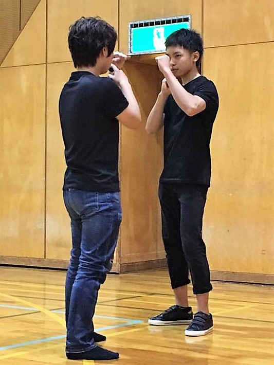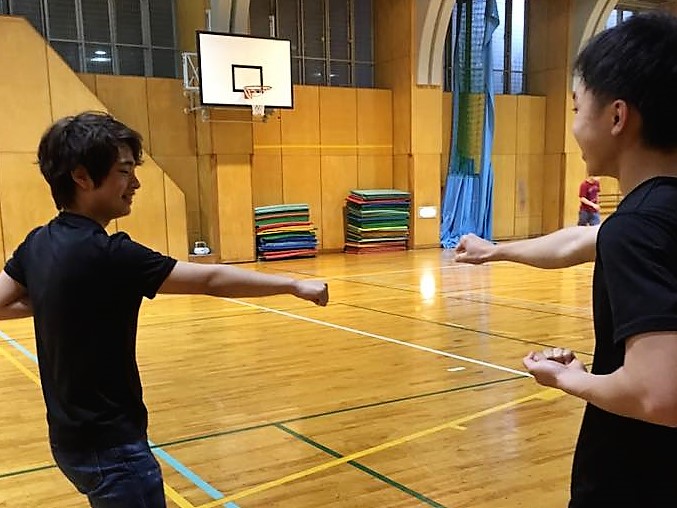 「基本の形は…実践だと…」と二人とも真剣です。二人は釜ヶ崎について学ぶ有志の会で仲良くなったそうです。こうやって生徒同士が繋がってくれること、本当に嬉しいです。