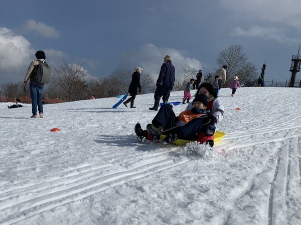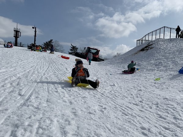 さあ、雪遊び開始です。大人気のソリでは長い距離を風を切りながら声を上げて滑っていました。