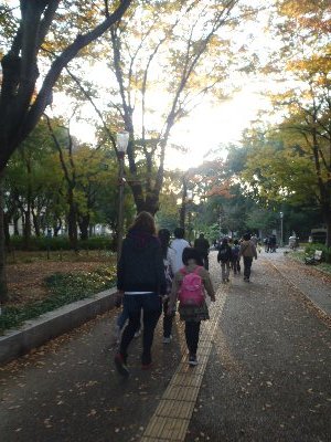公園に到着すると、いちょうがきれいに色づいていて、たくさんの人が遊びに来ていました。